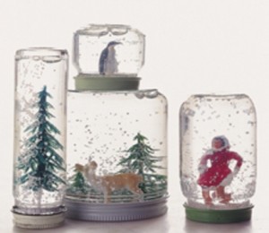 Intotdeauna ti-au placut frumoasele globuri cu Mos Craciun, o casuta mica sau un om de zapada in interior peste care ninge de fiecare data cand le scuturi? Acum chiar tu le poti confectiona. Ia un borcanel de mancare pentru bebelusi, de exemplu, lipeste o figurina cu un om de zapada sau Mos Craciun in interiorul capacului. Mai adauga ceva mici obiecte dragute, toarna apa in borcan, adauga si hartia care sclipeste in interior si sigileaza bine borcanelul. Este necesar ca figurinele sa fie rezistente la apa. Hartia sclipitoare sau confetiul din interior se poate achizitiona sau chiar confectiona. Daca alegi a doua varianta, atunci poti cumpara de la magazin hartie de impachetat cadouri si sa o tai in bucatele mici, mici, astfel ca va parea ca zapada, de fiecare data cand vei scutura borcanelul.
