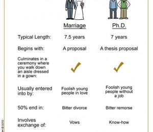 Pana cand moartea ne va desparti: mariaj: daca esti norocos; doctorat - daca esti lenes. Sursa foto.