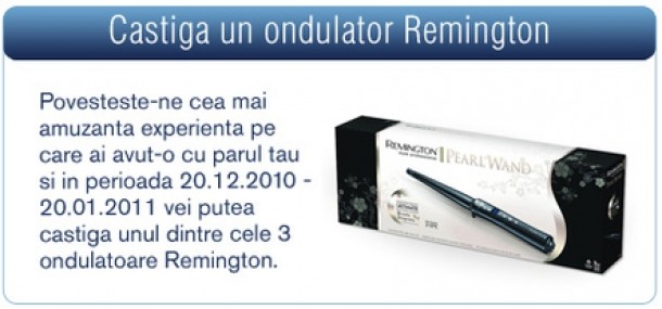 Posteaza povestea in casuta de comentarii a articolului “Top-experiente amuzante cu parul tau” si pe 20 ianuarie 2011 poti sa fii una dintre fericitele castigatoare ale unui ondulator Remington.