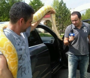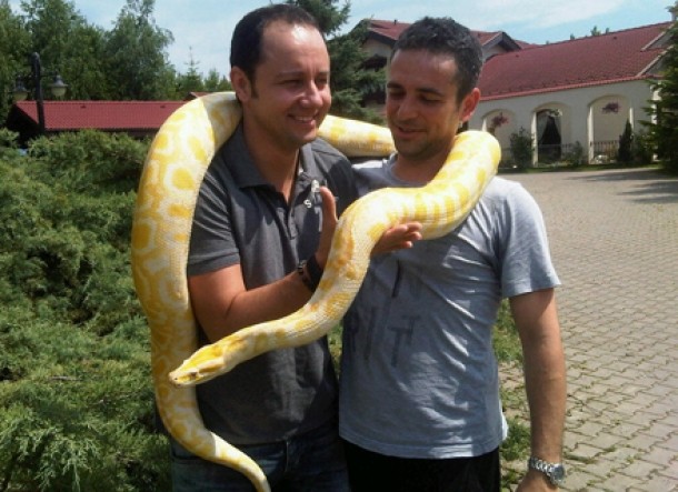 Si nu mica i-a fost uimirea lui Maruta cand s-a pomenit, chiar in timpul unei filmari, cu un piton albinos de 30 de kilograme gata sa se ”cuibareasca” langa el!