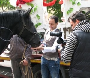 Inarmat cu un tort festiv, cu o trasura impodobita, cu muzica de sarbatoare, dar si cu multe bentite aidoma celor purtate de Marian Nistor, Catalin Maruta a pornit spre locuinta sotilor Nistor pentru a le ura "La multi ani".