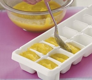 7. Mancarea pentru bebelusi este destul de scumpa. O varianta mai ieftina este sa o prepari singura si sa o ingheti in tava pentru cuburi de gheata. Astfel o vei putea folosi atunci cand ai nevoie de ea.