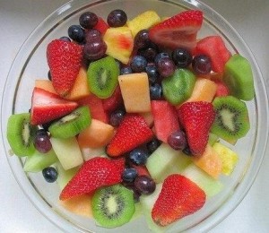 In fotografia postata pe Facebook, putem vedea un bol cu un mix de fructe, kiwi, pepene, struguri si capsune.
