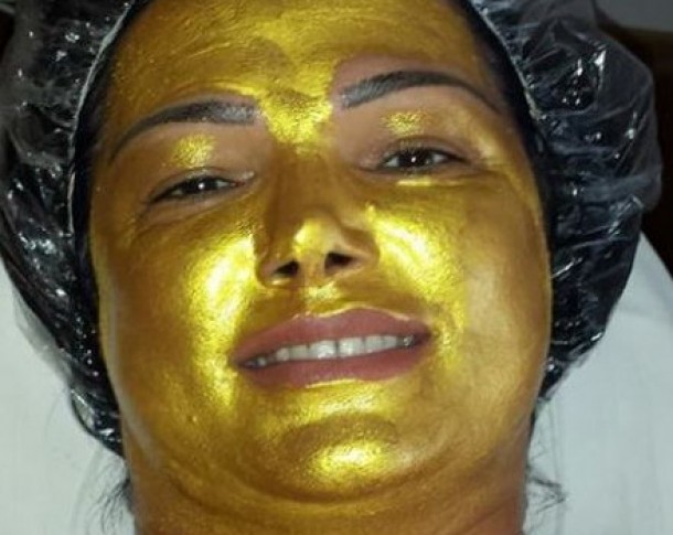 Recent, artista a postat pe contul de pe un site de socializare o fotografie in care apare cu o casca de par si o masca realizata cu particule de aur.