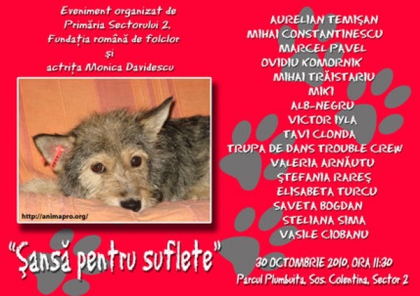 Organizez un spectacol pentru cei buni. Egoistii sunt invitati sa invete cate ceva de la ei. E cu intrarea libera si am langa mine artisti cu suflet mare care vor canta pentru voi, pentru a-i responsabiliza pe cei care isi iau in grija un suflet. Va trimit invitatia la spectacol si va voi spune mai multe despre el saptamana viitoare. Pana atunci ....toate bune si primiti invitatia.