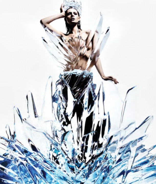 Un editorial al revistei TWELV, intitulat “Regina Gheturilor”, prezinta o tinuta realizata in intregime din gheata.
