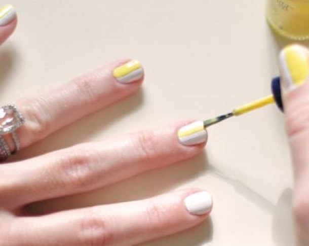 3. Aplica pe jumatate din fiecare unghie, tinand pensula dreapta, o oja intr-o alta culoare, de preferat una mai inchisa decat baza, daca vrei sa se vada diferenta!