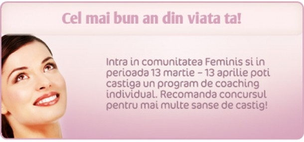 Scrie-ne pe forum despre cum ar arata anul tau cel mai bun daca am fi in martie 2010 si ai privi in urma ta. Poti castiga sansa ca lucrurile scrise chiar sa se realizeze, sustinuta de un program de coaching oferit de Dana Burghel, directorul executiv al companiei Learning About si coach in cadrul programului Best Year Yet. Programul de care vei beneficia va fi format din 4 sesiuni de coaching de cate 30 de minute - o ora, desfasurate on-line.