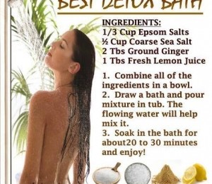 Ingrediente: 1/3 cana saruri de baie de la brandul tau preferat; 1/2 cana sare grunjoasa de mare; 2 linguri de ghimbir macinat (praf); 1 lingura de suc de lamaie proaspat stors.
