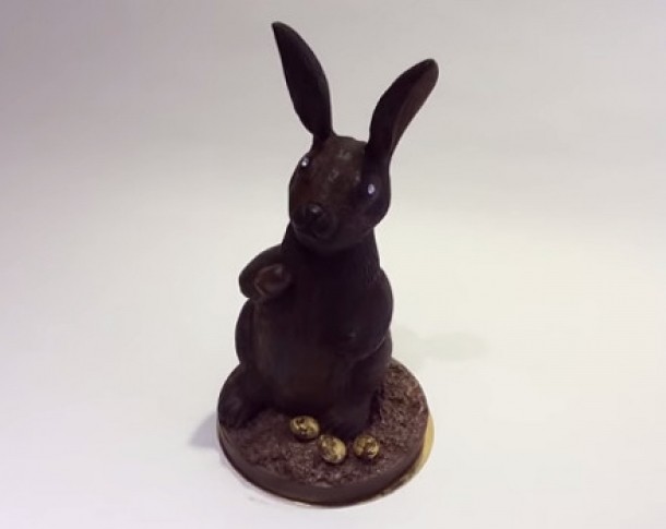 Cu o greutate de 5 kilograme, acest iepuras de Paste inalt de 38 de centimetri este realizat de un maestru ciocolatier care a folosit 75% cacao din Tanzania si accente din frunze de aur si l-a impodobit cu doua diamante solitaire de 1,07 carate, evaluate la peste 37.320 de dolari (care servesc pe post de ochi pentru iepuras).