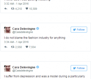 Cara Delevingne a explicat pe Twitter motivele pentru care a luat această decizie, spunând că se bucură de modelling acum, dar că perioada intensă de la începutul carierei a fost grea.