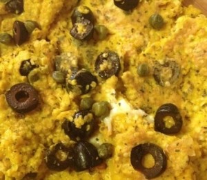 Ingrediente: Ingrediente: 2-3 oua, 2 linguri fulgi de mei, 6-7 masline( sau capere).