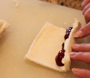 Umple apoi aluatul obtinut cu dulceata si ruleaza-l pentru a obtine un rulou. Introdu ruloul intr-un amestec de ou si lapte apoi prajeste-l putin intr-o tigaie in care ai topit o lingura de unt de arahide.