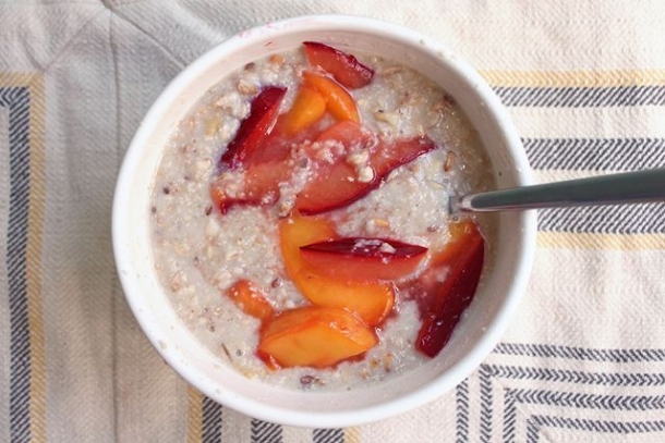 Trebuie să prepari micul dejun cu o seară înainte. Pentru început, pune prunele într-un bol cu 100 ml de apă fiartă. Acoperă castronul și lasă-l așa timp de 10 minute. În alt bol, pune ovăzul, cacaua și semințele de in. Apoi adaugă chefirul și amestecă bine. După asta, taie în bucățele prunele înmuiate în apă și adaugă-le peste amestecul obținut cu chefir. Trebuie să iasă o pastă cremoasă, ca piureul, e recomandat să folosești un blender. După ce au terminat de preparat micul dejun, pune-l la frigider până a doua zi.