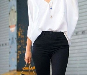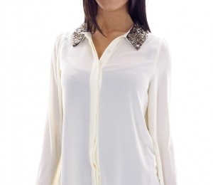 2. Cămaşa - lăsată cu nasturii de sus desprinşi, cămaşa îţi alungeşte gâtul şi te face să pari mai suplă.