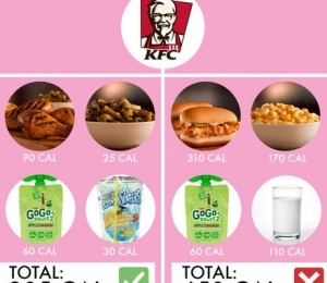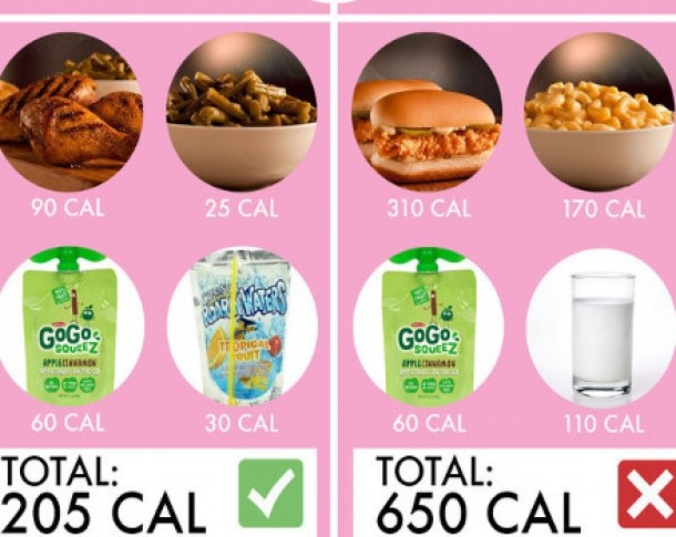 Combinatia cea mai bogata caloric: Chicken Little, Mac ‘n Cheese, Sos de mere si 1% lapte.