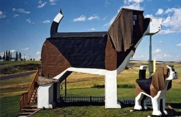 Niciodata n-a fost mai distractiv sa dormi in casuta cainelui, cu atat mai mult cu cat la Dog Bark Park esti cazat intr-un catel urias, rasa Beagle, la o inaltime de aproape 4 m de sol. Desigur, mentionam ca patrupedele nu sunt reale, ci construite din BCA la initiativa unor arhitecti nonconformisti. Dog Bark Park Inn e una dintre cele mai recente proiecte de resuscitare a turismului american de altadata, in care road-trip-urile erau foarte in voga, la fel ca si cladirile cu forme traznite (cum erau restaurantele drive-in in forma de hamburgeri, de exemplu). Campusul "catelusilor" numara cateva astfel de exemplare de locuinte in "burta" carora se pot adaposti lejer pana la patru persoane.
