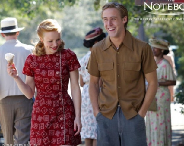 Povestea romantata dintre Ryan Gosling si Rachel McAdams (foto) a ajuns si la noi pe marile ecrane. Ryan Gosling il interpreteaza pe Noah Calhoun in filmul "The Notebook". Bazat pe romanul scriitorului Nicholas Sparks, acest film te va face sa plangi, pe masura ce filmul alterneaza intre relatia tumultoasa a unor tineri si relatia dintre un sot si sotia sa care are, la batranete, o boala cumplita - Alzheimer.