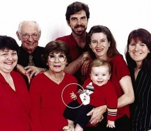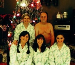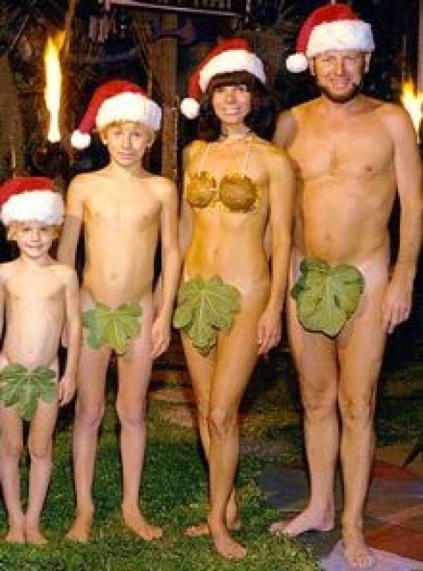Cei patru membri ai familiei au avut ideea de a se poza dezbracati si cu o frunza lipita in zona intima.