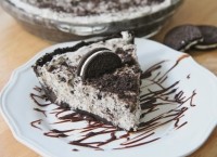3. Se rupe cheescake-ul cumpărat în bucățele și se amestecă cu înghețata muiată, dar nu topită, apoi se așează amestecul peste blatul din pesmet și se dă la congelator.