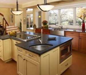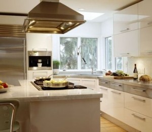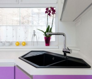 Intr-o bucatarie mica, daca pui chiuveta pe colt, ai mai mult spatiu liber pentru preparare ceea ce este un plus. Daca iti plasezi chiuveta in colt, de cele mai multe ori nu ai parte de lumina suficienta atunci cand speli vasele. Exista o solutie si pentru asta, poti sa iti incorporezi lumina in masca de la chiuveta sau, daca iti construiesti o casa dupa bunul plac, poti sa gandesti designul la bucatarie cu fereastra pe colt si chiuveta sub ea.
