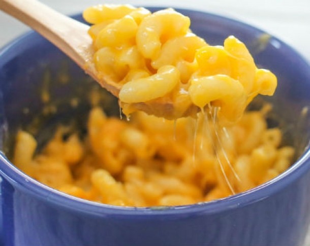 Adauga peste branza rasa si amesteca din nou cu lingurita pana cand toata branza cedar a fost amestecata cu pastele. Pentru ca branza sa se topeasca mai are nevoie de inca 30 de secunde in cuptorul cu microunde, dupa care poti servi cea mai rapida cina.