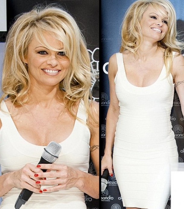 Aflata la un targ de frumusete desfasurat in Germania, Pamela Anderson a fost in centrul atentiei, purtand o rochie alba, decoltata, care i-a pus in valoare silueta supla si bustul generos.