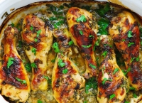 1/2 cană de unt, 3 linguri de usturoi mărunţit, 3 linguri de sos de soia, 1/4 linguriţă de piper negru, 1 linguriţă de pătrunjel, 6 ciocănele de pui