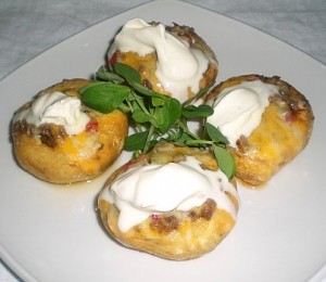 Se amesteca avocado cu dovlecelul si cu condimentele. Se umplu palarioarele cipercilor si se baga la cuptor, in tava unsa cu restul de ulei de masline. Se lasa la copt 20 minute. Se servesc (optional) cu o lingura de smantana, cu marar si patrunjel.