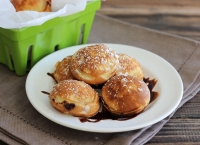 1 banană, 1 ou, 1 cană și 1/2 făină, 1 vârf zahăr, 1 vârf sare, 2 linguri unt, 3 lingurițe praf de copt, 3/4 cană lapte, 4 linguri cremă de ciocolată, ulei pentru prăjit