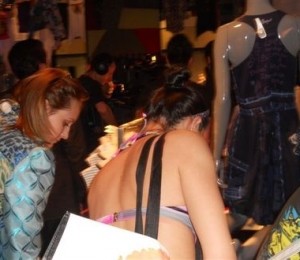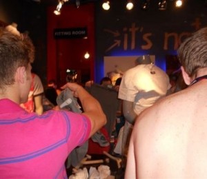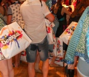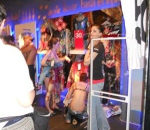 Proband direct in magazin, fanii Desigual au umblat doar in lenjerie intima si au ales haine care sa le acopere nuditatea. Entuziasmul de a face shopping atat de confortabil s-a putut observa pe chipul fiecarui “client”. Ca niste vedete, au iesit din magazin imbracati din cap pana-n picioare in haine Desigual.