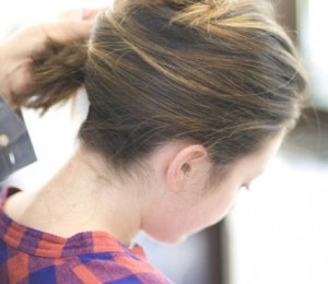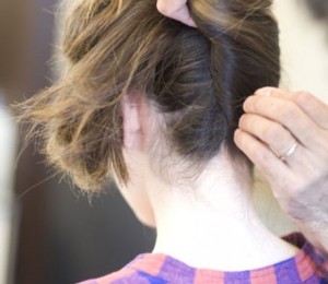 Pasul 2: Prinde tot parul intr-o mana si mentinand degetul mare in mijloc, rasuceste parul in interior.