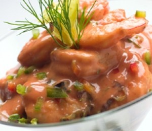 Se dezgheata fructele de mare si se fierb aproximativ 7 minute. In apa se adauga chimion si piper. Se scurg, se separa de cochilii (daca e cazul) si se aseaza intr-un castron. Se adauga castravetele, coriandrul, avocado si ceapa, iar deasupra se toarna sosul de rosii. Puteti folosi doar creveti pentru a scapa de cateva calorii.