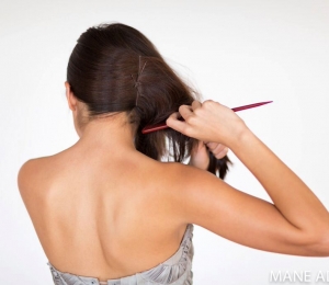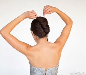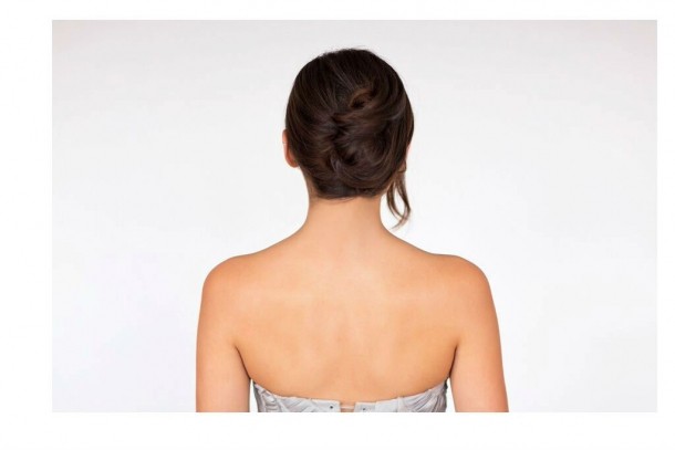 3. Trage apoi vârfurile părului către stânga, rulează părul către interior şi fixează-l aşa cu agrafe de păr.