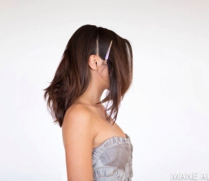 2. Restul părului, perie-l bine şi apoi trage-l către dreapta. Fixează-l aşa cu câteva agrafe subţiri, exact ca în fotografiile de mai jos.
