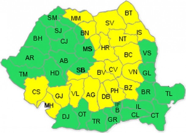 Cod galben de ninsori, de vineri dimineata pana sambata seara, in 21 de judete