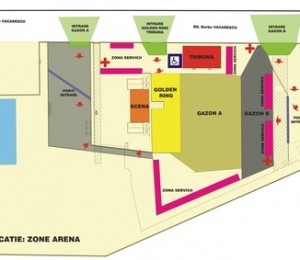 Intrarea in incinta complexului se va face prin Bd. Barbu Vacarescu, prin trei puncte de acces separate (una pentru spectatorii cu bilete la Gazon B; una pentru spectatorii cu bilete la Gazon A si una pentru spectatorii cu locuri la tribuna oficiala si Golden Ring).