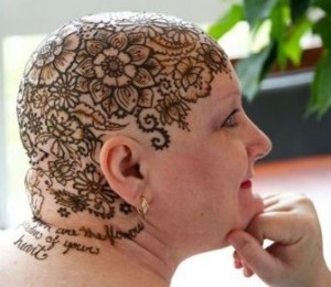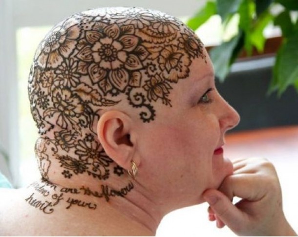 Artistii care fac parte din aceasta comunitate folosesc henna, o substanta temporara folosita la decoratiunile corpului, pentru a picta imagini frumoase si modele pe capetele fara par ale pacientilor ce sufera de cancer si alopecie (caderea parului sau calvitie).