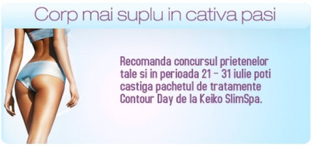 Contour Day de la Keiko SlinSpa este un pachet de tratamente care iti vor remodela corpul, rezultatul fiind masurat in centimetri in minus.