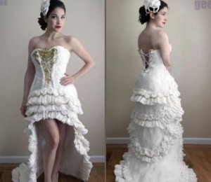 "Trash the dress" dus la extrem: rochia de mireasa din hartie igienica