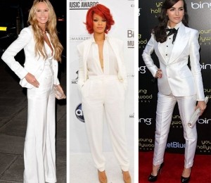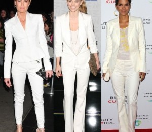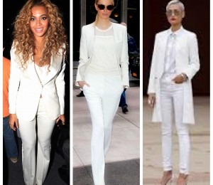 Potrivirea este cheia pentru a face să fie feminin trendul costumelor albe. "Cu siguranță vrei să găseşti un sacou care este adaptat formei corpului tău şi care se aşază pe linia taliei", spune Jaffe.