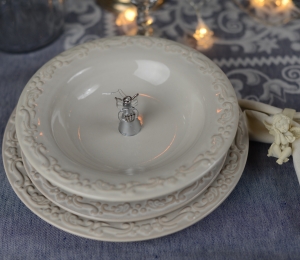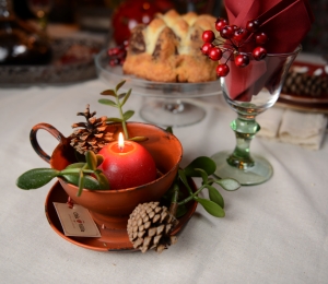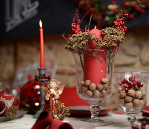 Poți crea un centerpiece unic folosindu-te de mici elemente decorative: un brăduț, un îngeraș, o coroniță la care să adaugi conuri și crenguțe adunate de tine din pădure – astfel propria-ți poveste de iarnă se va desfasura ludic sub privirile admirative ale oaspeţilor.