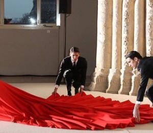 Creatie spectaculoasa la Paris Couture Week: Rochia care cantareste 50 de kilograme si are 45 de metri lungime