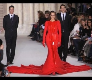 Casa de moda Stephane Rolland a uimit pe toata lumea prezenta la evenimentul Paris Fashion Haute Couture Week cu o creatie inedita. Este vorba de o rochie rosie care cantareste in jur de 50 de kilograme si a carei trena masoara nici mai mult nici mai putin de 45 de metri.