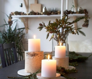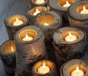 Crengile şi scoarţa de copac reprezintă suporturile ideale pentru lumânări, mai ales dacă îţi doreşti să oferi un aer cozy casei tale. Tot ce trebuie să faci este să aduni crengi căzute din copacii din curtea casei sau a blocului în care locuieşti, să le cureţi aşa cum trebuie, să le laşi la uscat, iar apoi să le scobeşti pentru a face loc lumânărilor.