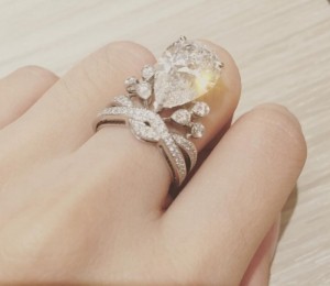 » Un inel de logodnă de 1.5 milioane de dolari de la bijuteria pariziană Chaume, cu un diamant de 5 carate.
