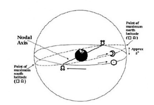 Aha...da, da, stiu, ma veti intreba ce sunt Nodurile Lunare. Astronomic ele reprezinta momentul in care Luna intersecteaza orbita pamantului stiut fiind ca orbita Lunii are o inclinatie fata de orbita Pamantul de circa 5 grade, astfel ca Luna in miscarea sa, deoparte si de alta a orbitei terestre, o intersecteaza odata cand trece in emisfera nordica si atunci vorbim despre Nodul Nord si odata cand trece in emisfera sudica si vorbim despre Nodul Sud. Cand vorbesc despre emisfere nu ma refer la emisferele stabilite astronomic pentru Pamant care este impartit in Emisfera Nordica si Emisfera Sudica, ci la inclinarea orbitei lunare fata de orbita Pamantului.