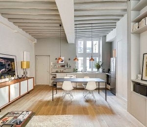 Deşi vorbim despre o suprafaţă de 50 de metri pătraţi, cuibul pare foarte spaţios şi funcţional. De cum intri în încăpere, eşti înconjurată de o zonă plană de locuit şi o zonă de luat cina, înconjurată cu pereţi albi şi de plafon.