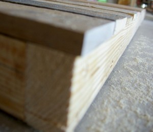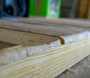 1. Îndepărtează cu fierăstrăul bucăţile de lemn din partea de jos a paletului şi freacă cu smirghel orice suprafaţă care prezintă imperfecţiuni.