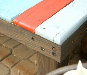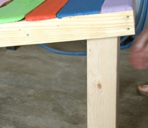 4. Prinde picioarele de palet cu holtzşuruburi ca în imaginea de mai jos, după care vopseşte lateralele în aceeaşi culoare cu picioarele.